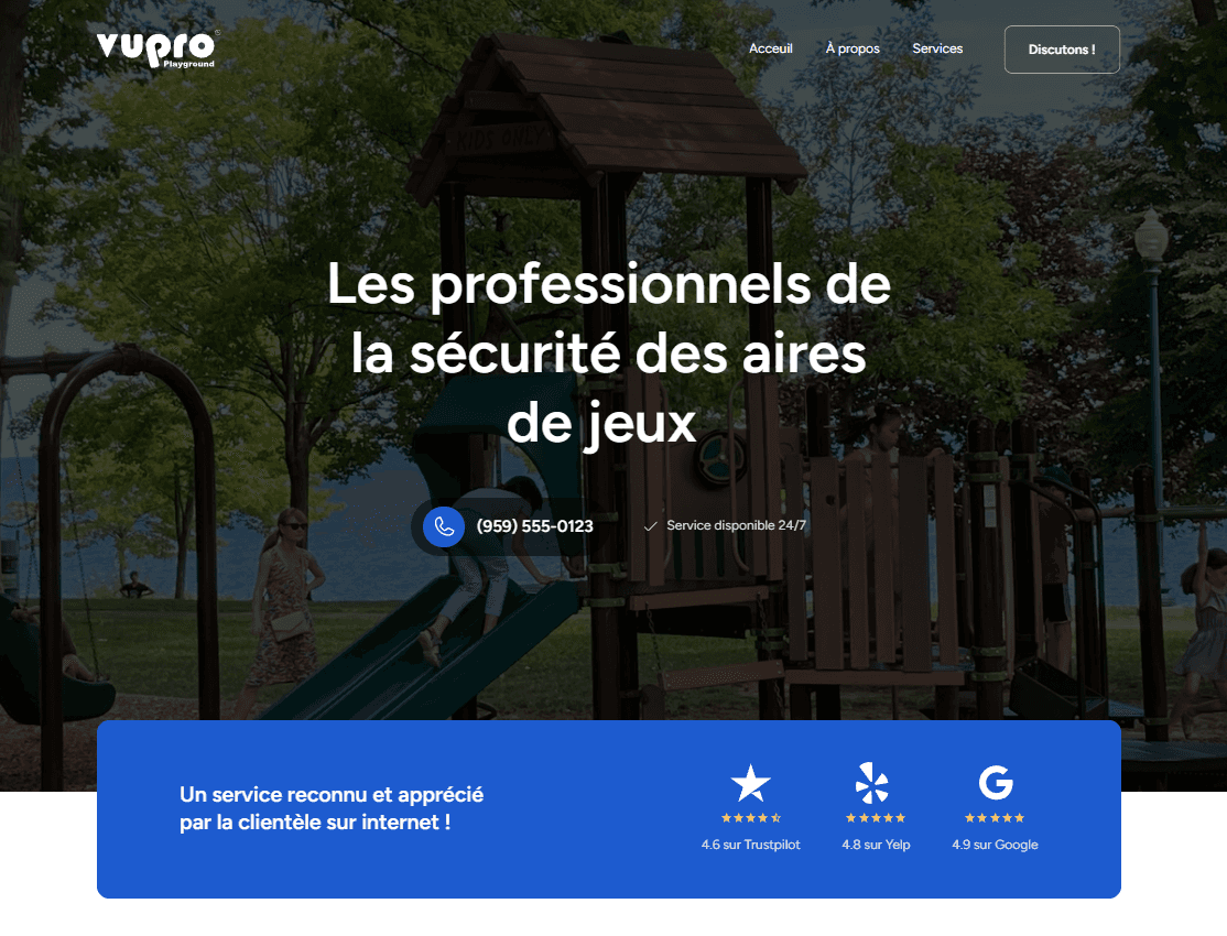 Nous avons conçu un site moderne et structuré pour une entreprise spécialisée dans l’inspection d’aires de jeux, offrant une navigation fluide et un accès clair aux informations essentielles. Le design sobre met en avant l’expertise, les services d’inspection et les engagements en matière de sécurité et de conformité, tout en facilitant la prise de contact et les demandes d’intervention.